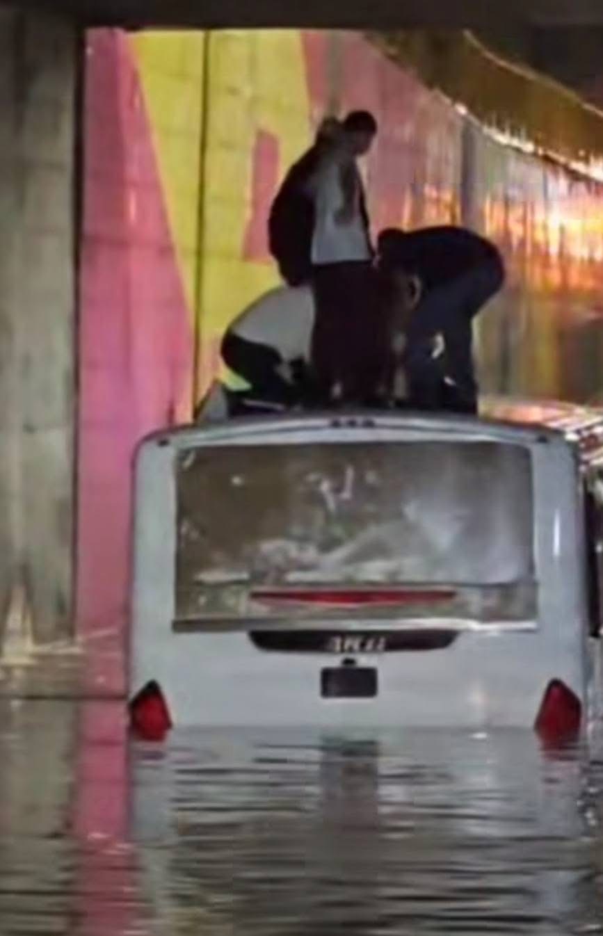De acuerdo con la Secretaría de Seguridad, el conductor de la unidad ignoró la señalética que advertía sobre la inundación en la zona, lo que provocó que el camión quedara varado mientras el nivel del agua casi lo cubría por completo, tras la fuerte lluvia registrada la noche del viernes.