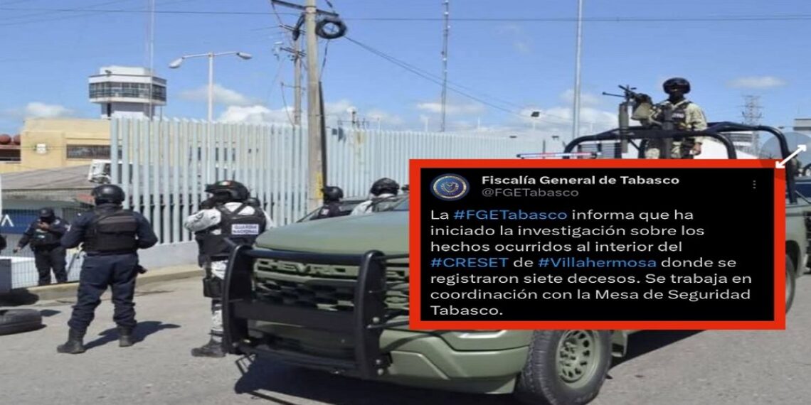 Tabasco.– La Fiscalía General del Estado de Tabasco confirmó que tras un motín al interior del Centro de Readaptación Social de Tabasco (CRESET) se tienen registrados siete decesos.