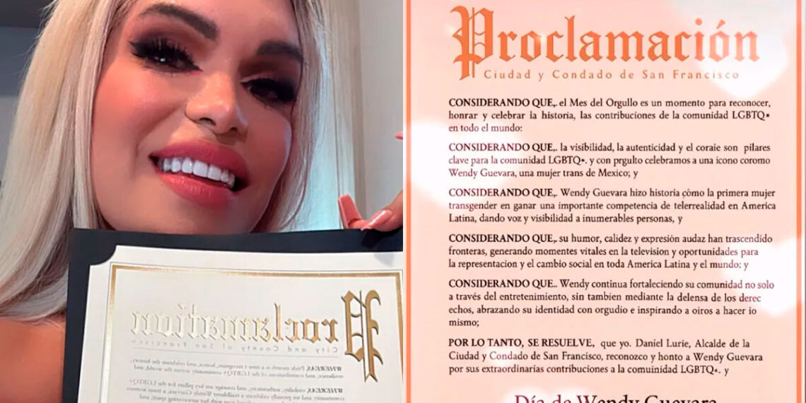 San Francisco, California– Wendy Guevara, influencer y ganadora de La Casa de los Famosos México 1, vivió un emotivo momento durante su visita a San Francisco, donde fue invitada especial en el marco de las celebraciones del Pride 2025. En un gesto histórico, las autoridades de la ciudad estadounidense proclamaron el 29 de junio como el “Día de Wendy Guevara”, en reconocimiento a su trayectoria y contribución a la visibilidad de la comunidad LGBTQ+.