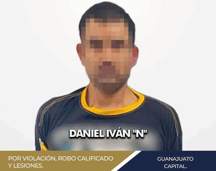 Guanajuato.- La Fiscalía General del Estado esclareció diversos hechos delictivos en la ciudad de Guanajuato, donde un hombre identificado como Daniel Iván, alias “el atlanta”, fue capturado y llevado ante un Juez, como responsable de varios delitos, entre ellos violación, lesiones y robo.