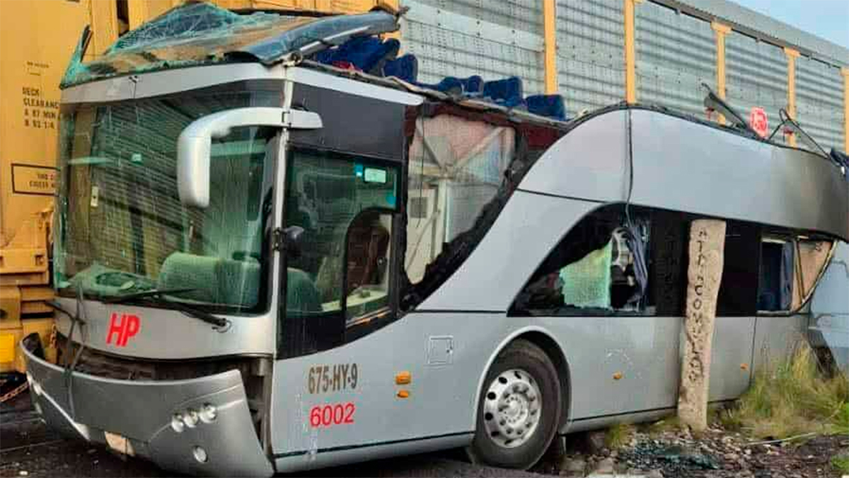 En imágenes difundidas del lugar, se observa que el tren, que transportaba automóviles hacia el norte del país, impactó de costado al autobús, el cual quedó severamente destrozado en su parte superior y trasera debido a que era de doble piso.
