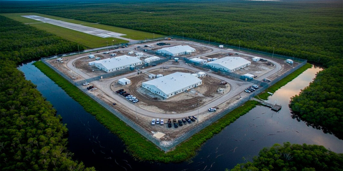 La instalación, que alberga actualmente a 500 detenidos y planea expandirse para alojar hasta 3,000 personas, fue presentada como un nuevo modelo para el sistema de inmigración de EE. UU. Trump destacó entre bromas la peculiar ubicación del centro y la función de los caimanes locales como elementos disuasorios de fuga: “Tienen muchos guardaespaldas y muchos policías en forma de caimanes. No hay que pagarles mucho”, comentó el mandatario, ante la pregunta de una reportera de ABC News.