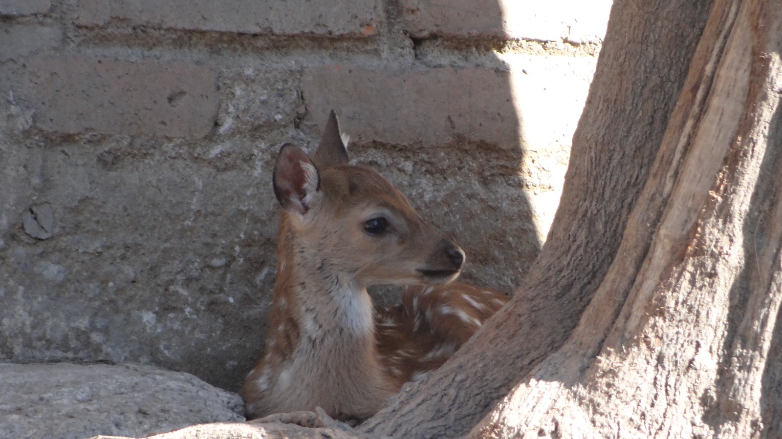 La cría nació hace aproximadamente 15 días y ya se encuentra en su albergue, acompañada y protegida por los integrantes de su especie. El Venado Axis se caracteriza por su pelaje castaño rojizo en verano y castaño grisáceo en invierno; únicamente los machos desarrollan astas ramificadas, las cuales mudan al finalizar el invierno. Esta especie puede vivir hasta 15 años, es herbívora y mantiene un comportamiento social en grupos familiares o manadas. Su periodo de gestación es de siete meses, con una o dos crías por camada.